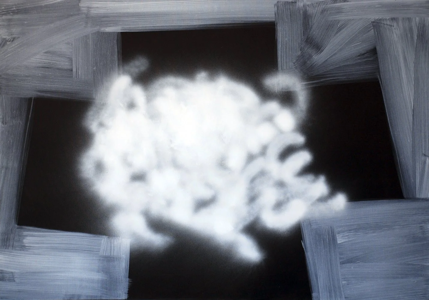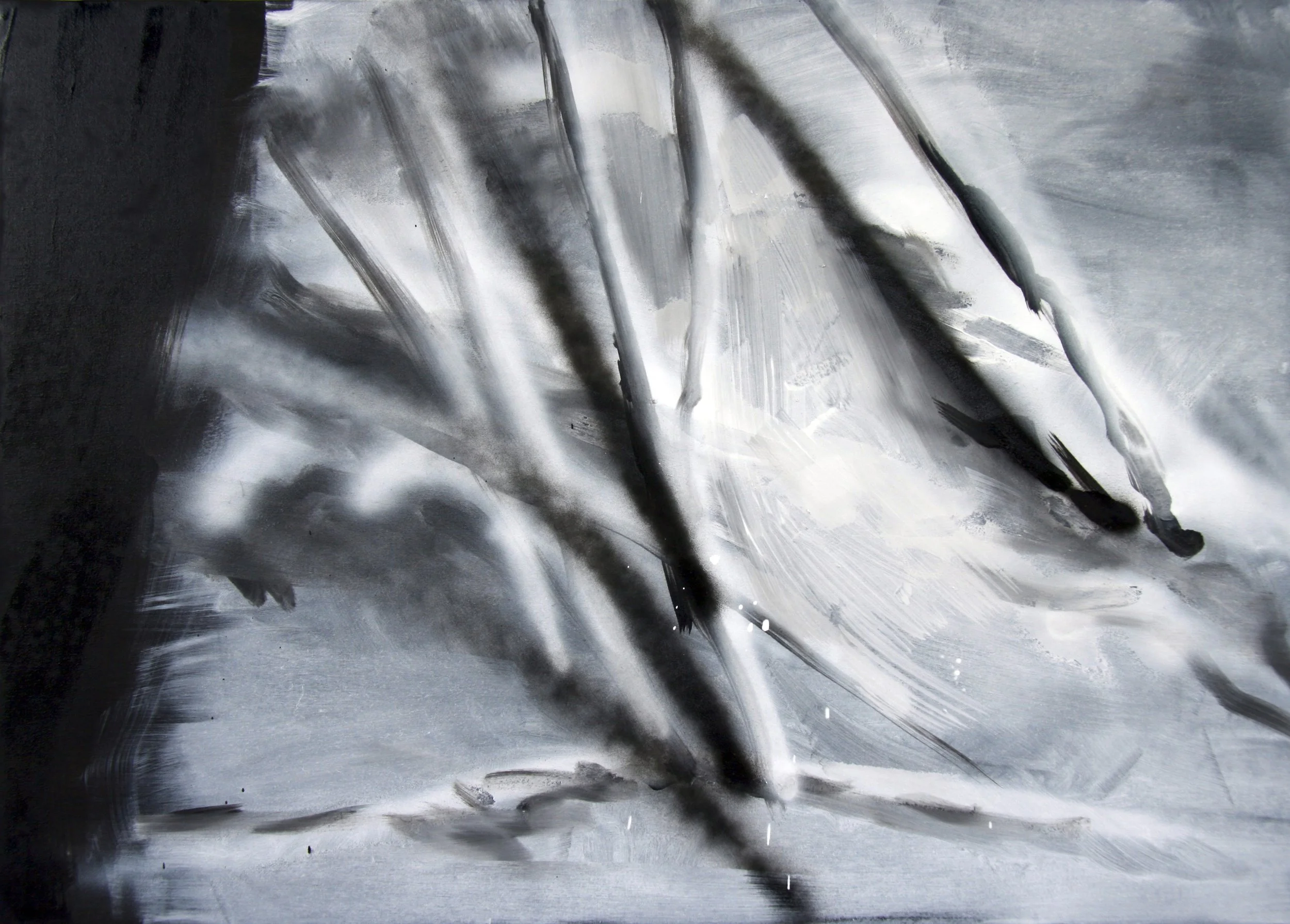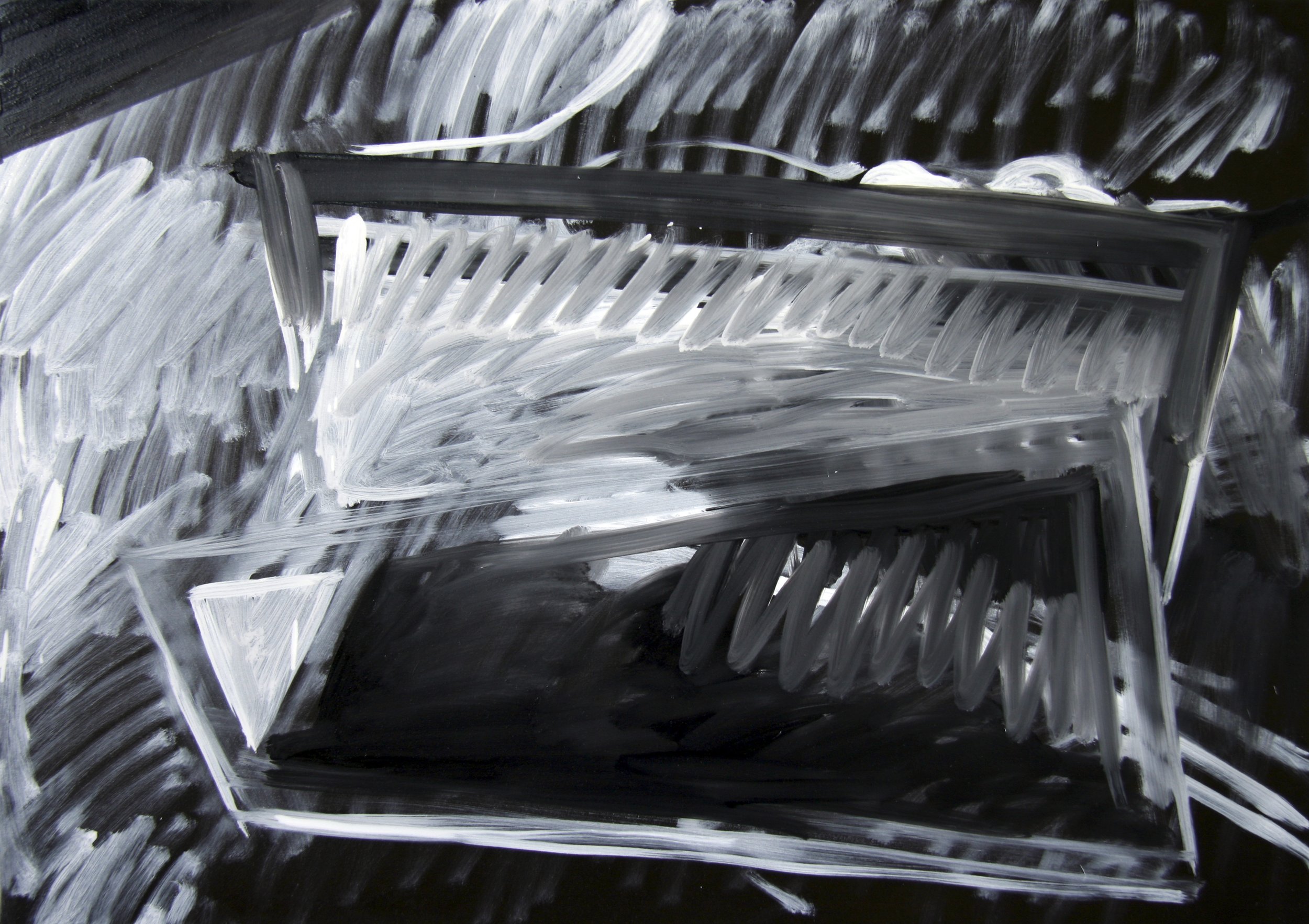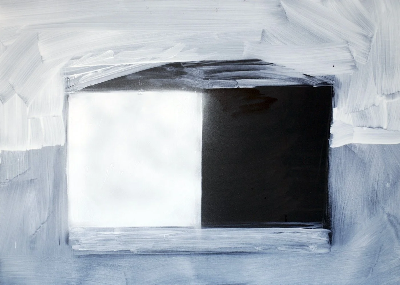 A series of paintings, oil on canvas, white on black, created from images of pleasant landscapes, details of solitary places, desolate panoramas with out-of-place elements. In translating from image to image, the attempt is to further abstract. The goal is partial abstraction.